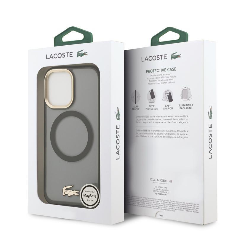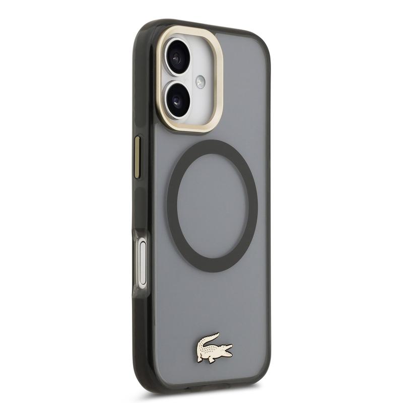 Protect your iPhone 17 in style with the Lacoste Frosted Finish Gold Logo MagSafe Case. Crafted from a durable mix of polycarbonate (PC) and flexible TPU, this case ensures reliable everyday protection while maintaining a sleek, slim profile. The matte frosted finish highlights the iconic gold crocodile logo and elegant gold camera frame, adding a luxurious touch to your device. With MagSafe compatibility, it supports wireless charging and accessories without compromise.