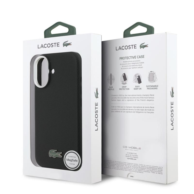 The Lacoste Iconic Petit Pique MagSafe case for iPhone 17 combines timeless Lacoste design with practical everyday protection. Made from lightweight, durable PVC with a soft-touch finish and a microfiber-lined interior, it offers a secure grip and comfortable handling while helping protect your phone from daily wear. Full MagSafe compatibility ensures effortless wireless charging and seamless use with magnetic accessories, all wrapped in a clean, elegant look highlighted by the iconic metal crocodile logo.