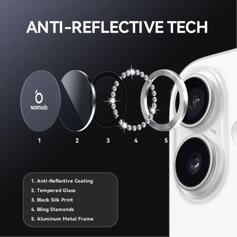 Add sparkle and protection to your iPhone 17 with the NORTHJO Camera Lens Protector. Designed with shimmering rhinestones and precision-cut tempered glass, it keeps your camera lens safe from scratches, dust, and impact while adding a touch of elegance and luxury.