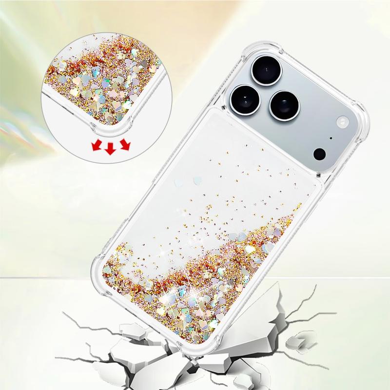 Turn every flip into a sparkle show. This ultra-slim TPU case for the iPhone 17 Pro Max combines fluid glitter hearts with shock-absorbing protection, wrapping your foldable in a fun, eye-catching layer that keeps scratches, drops and everyday scuffs at bay. Precise cut-outs leave hinges, speakers and USB-C ports fully accessible, while raised edges shield the camera lenses and outer display when you set the phone down.