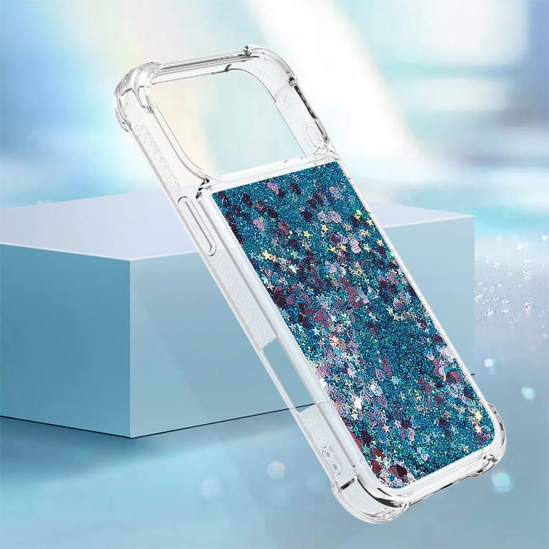 Turn every flip into a sparkle show. This ultra-slim TPU case for the iPhone 17 Pro Max combines fluid glitter hearts with shock-absorbing protection, wrapping your foldable in a fun, eye-catching layer that keeps scratches, drops and everyday scuffs at bay. Precise cut-outs leave hinges, speakers and USB-C ports fully accessible, while raised edges shield the camera lenses and outer display when you set the phone down.
