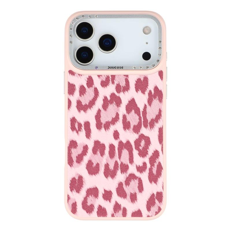 Jaucase Leopard Print Magnetic Hybrid Case for iPhone 17 Pro - PU + TPU + PC with Rhinestone Lens Frame