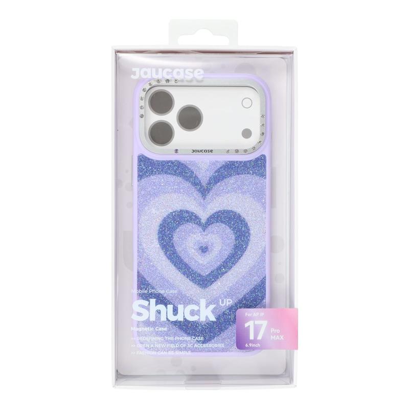 Jaucase Heart Pattern Magnetic Hybrid Case for iPhone 17 Pro Max – Polyurethane + TPU + PC with Rhinestone Lens Frame