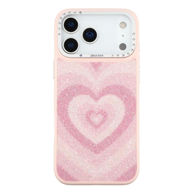 • Jaucase Heart Pattern Magnetic Hybrid Case for iPhone 17 Pro – Polyurethane + TPU + PC with Rhinestone Lens Frame