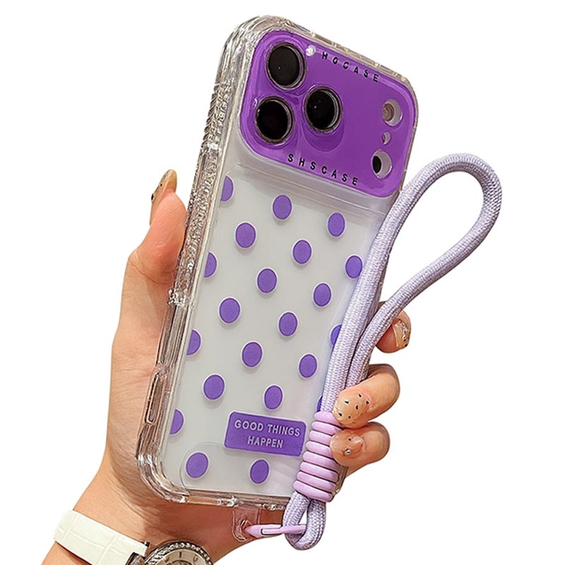 iPhone 17 Pro PC / TPU Cover with Lens Film & Strap - Polka Dot - Purple