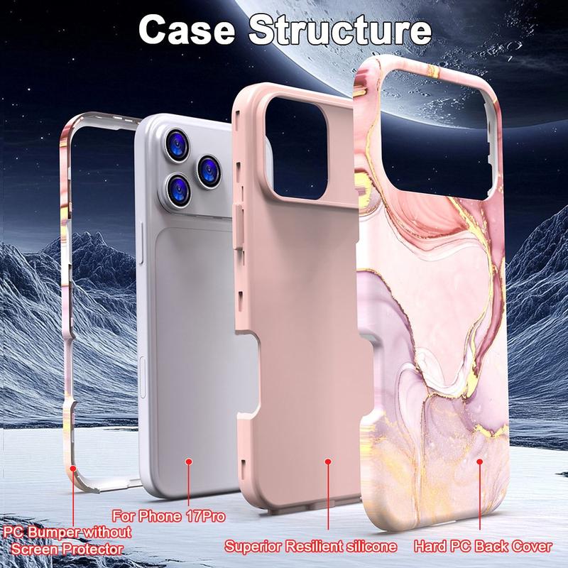 iPhone 17 Pro Luxury Marble Hybrid Case - Stylish PC and TPU Shockproof Phone Cover with Camera Protection