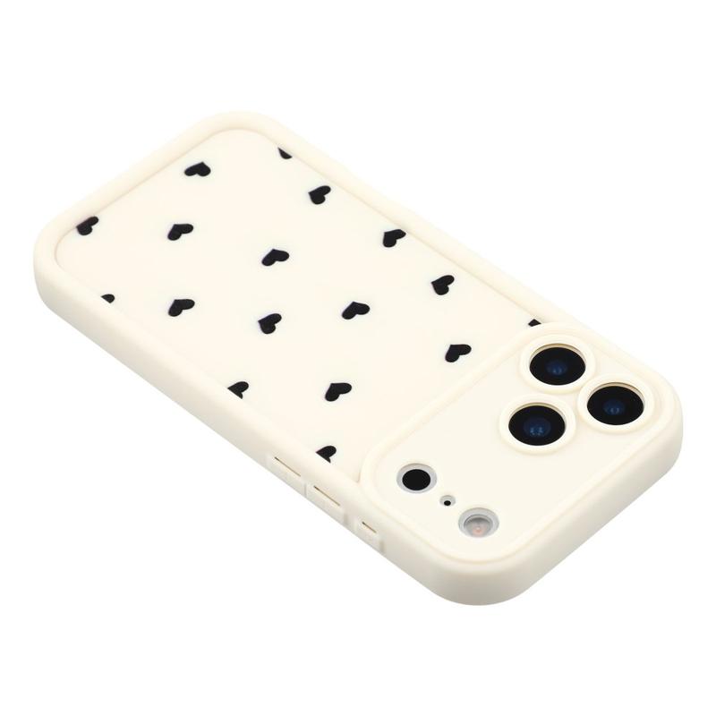 iPhone 17 Pro Max Heart Pattern Shockproof TPU Case with Raised Edges - White