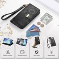 Floral & Leaf Pattern Wallet Case with Zipper Pocket & Wrist Strap for iPhone 17 Pro