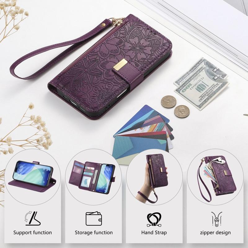 Unlike ordinary iPhone 17 Pro cases, this all-in-one wallet cover combines protection, organization, and elegance. The floral imprinting gives it a stylish edge, while the zipper pocket and wrist strap provide unmatched convenience for daily life and travel.