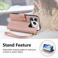 Floral & Leaf Pattern Wallet Case with Zipper Pocket & Wrist Strap for iPhone 17 Pro Max