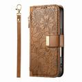 Floral & Leaf Pattern Wallet Case with Zipper Pocket & Wrist Strap for iPhone 17 Pro Max