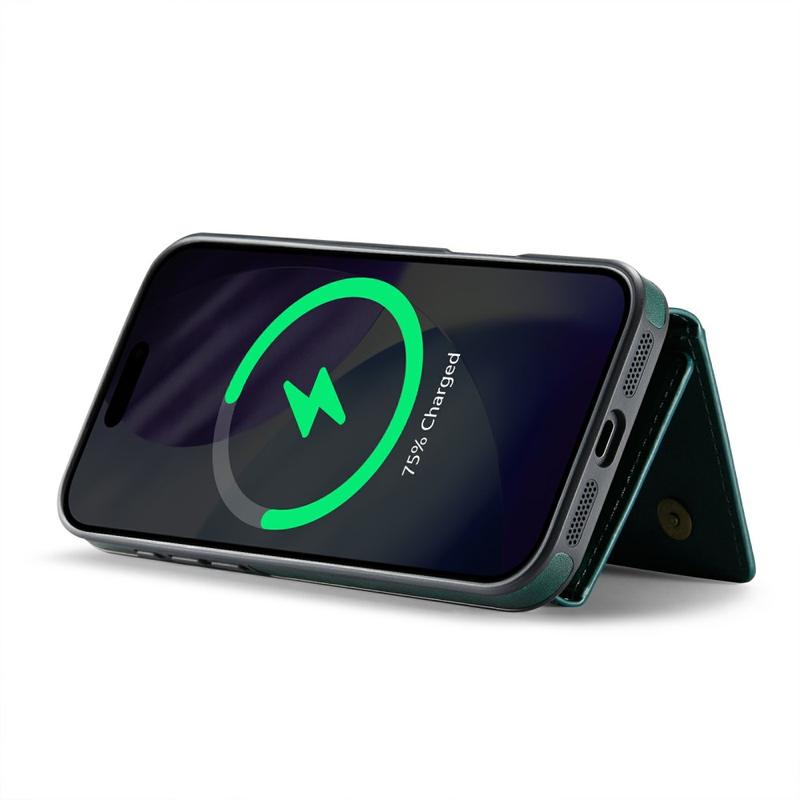The case features a built-in magnetic ring for strong MagSafe attachment. Detach the wallet instantly and enjoy MagSafe wireless charging without removing the case.