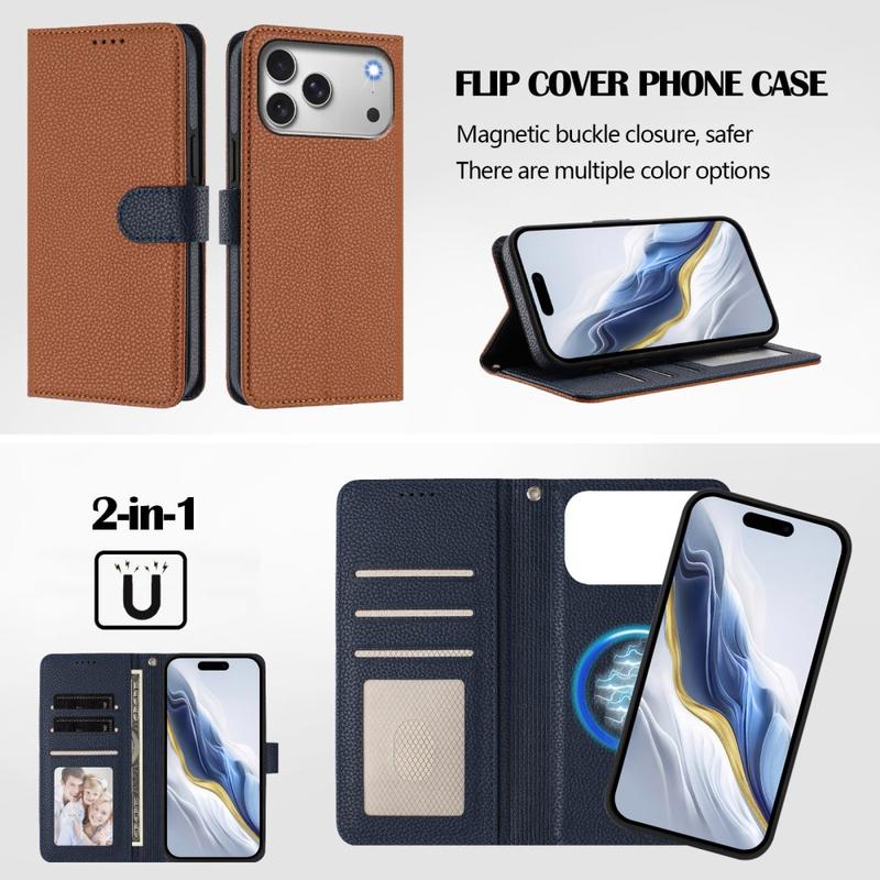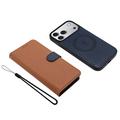 iPhone 17 Pro Detachable Wallet Case with MagSafe, RFID Protection & Hand Strap - Brown / Blue