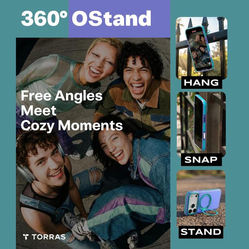 Torras O3 Hue MagSafe Case for iPhone 17 Pro - PC/TPU Protective Cover with 360 Magnetic Kickstand