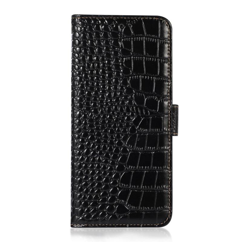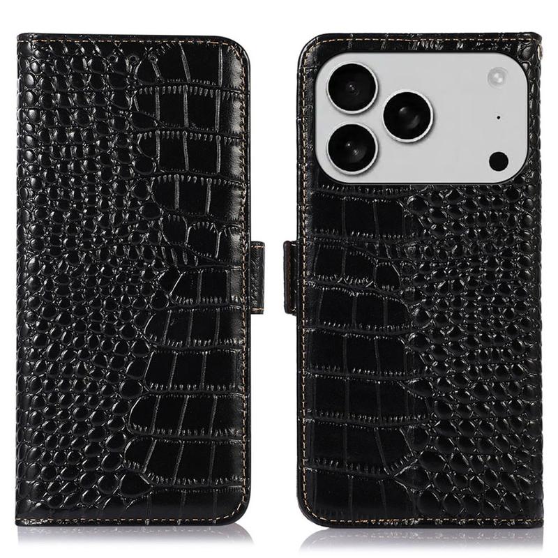 A lightweight and soft wallet case with a unique crocodile texture, the perfect choice to protect your iPhone 17 Pro Max and keep it undamaged. It's made of high-quality genuine leather and inner TPU material, designed with three card slots, an ID slot, and a pocket for cash, ideal for carrying your essentials next to your iPhone 17 Pro Max. Also, RFID technology effectively blocks signals and keep's your data secured.