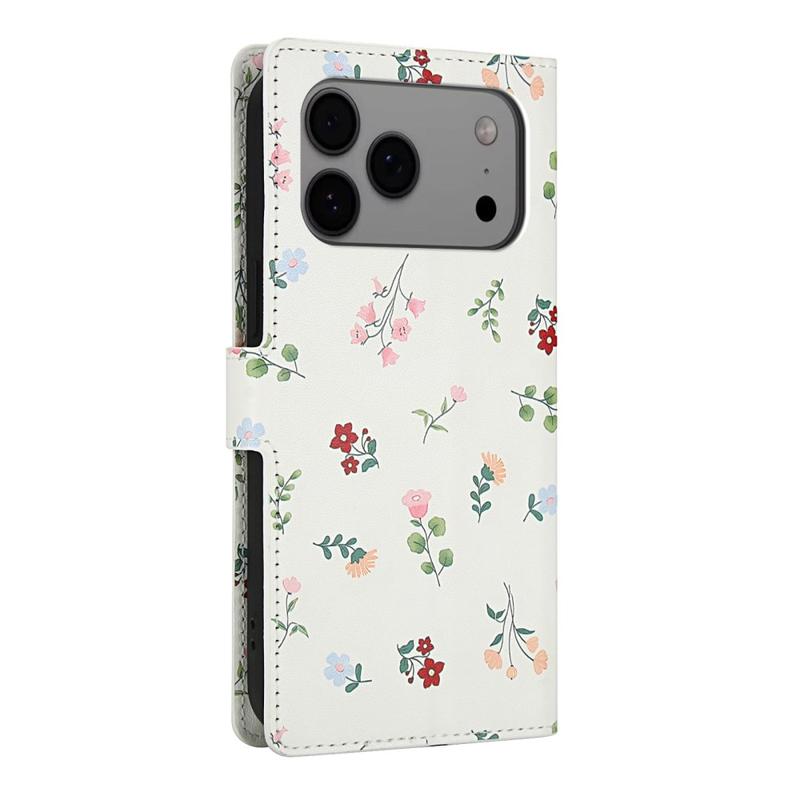 Rhombic Floral Wallet Case for iPhone 17 Pro Max - with Strap and Card Slots