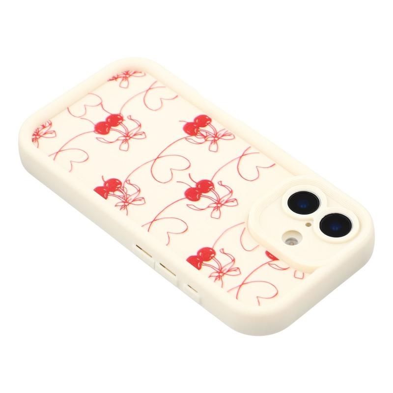 iPhone 17 Stylish Shockproof TPU Case with Raised Edges - White / Bow-Tied Cherries