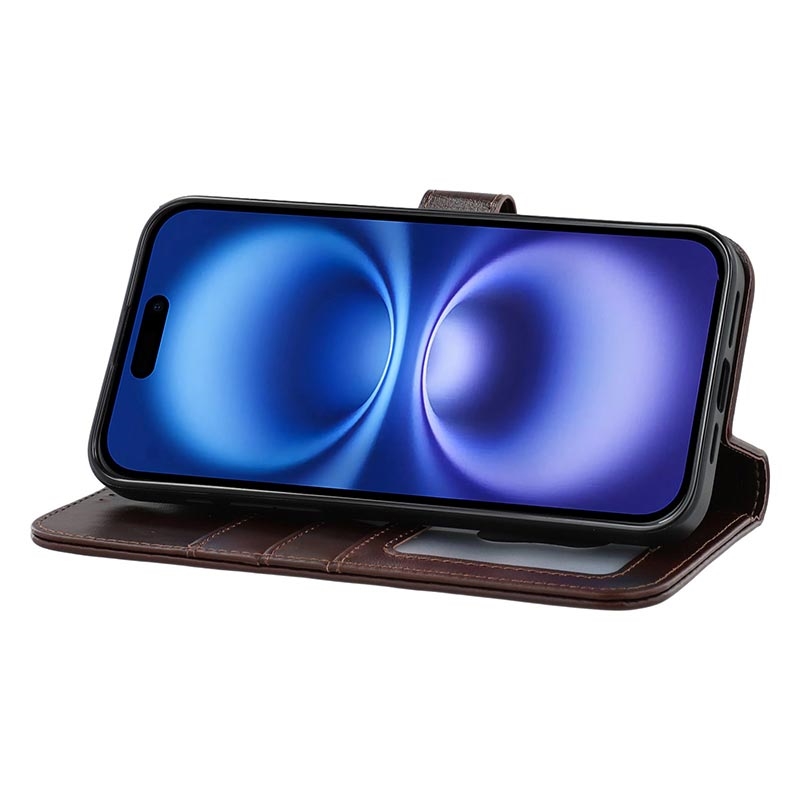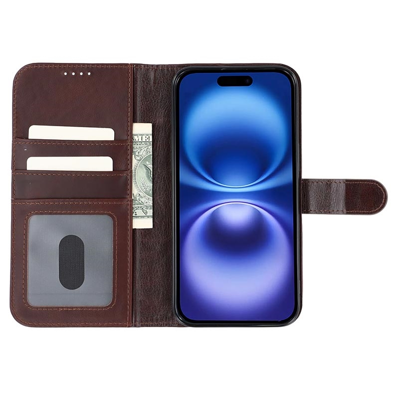 iPhone 17e MyTPhone CardMate Leather Wallet Case - Dark Brown