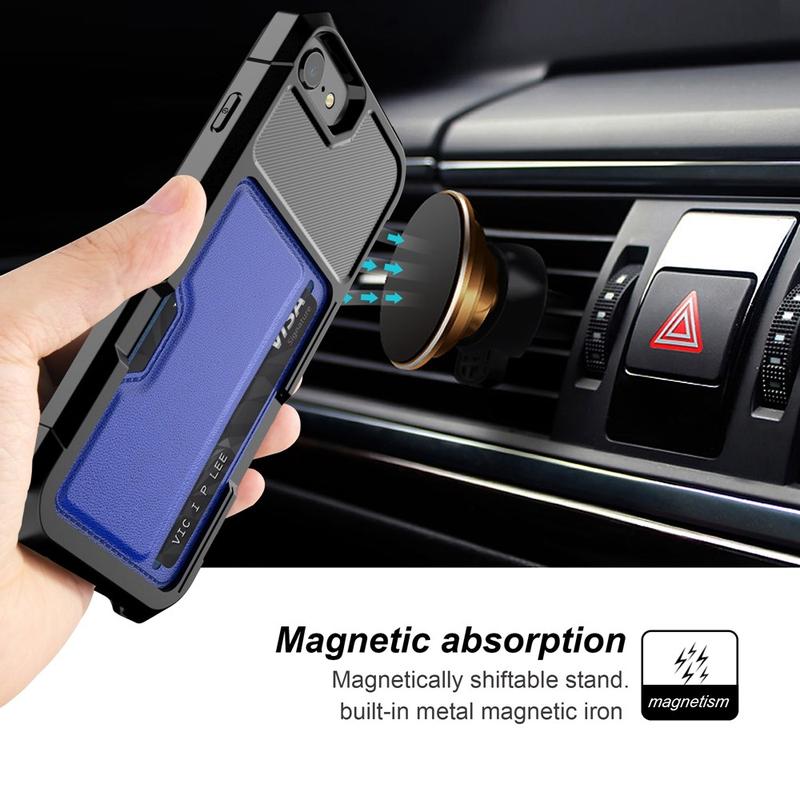 Place your credit card into the case back pocket and use it as a kickstand, thanks to the cleverly designed slot. Don't worry about bumps and scratches because a TPU cover with reinforced edges will absorb them. Built-in metal plate enables usage of this card slot hybrid case with magnetic holders. Raised edges around the camera and screen of your iPhone 7, iPhone 8, iPhone SE (2020), iPhone SE (2022) provide additional protection.