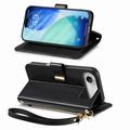 Floral & Leaf Pattern Wallet Case with Zipper Pocket & Wrist Strap for iPhone Air