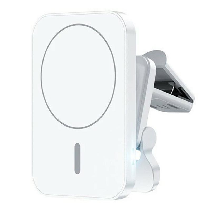 JJT-987 15W Magnetic Wireless Charger/Car Holder with Air Vent Clip - MagSafe Compatible - White