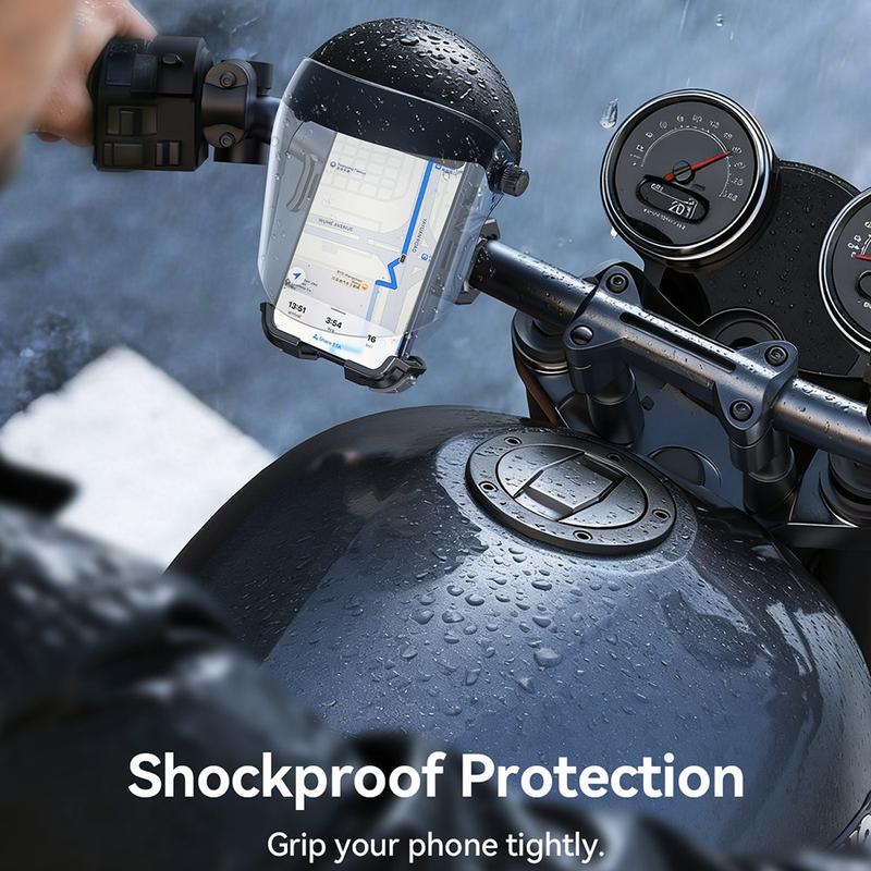 If you ride in sunny conditions, screen glare can make navigation frustrating and unsafe. The JR-ZS526 solves that with a large adjustable sunshade, while the locking system and metal clamp arms keep your phone stable even on bumpy roads. It is a practical upgrade for daily commuting and longer rides where reliability matters.
