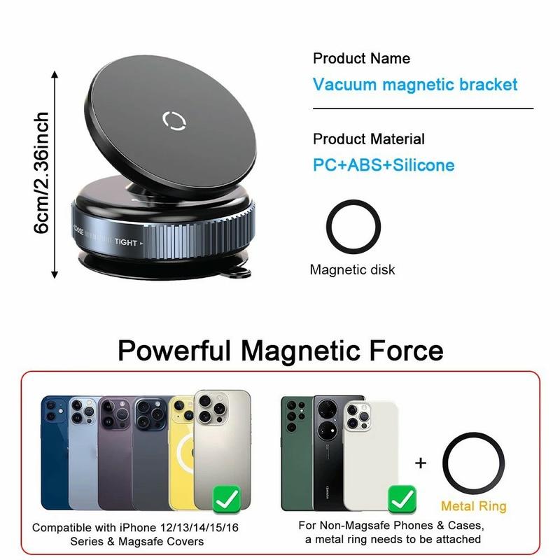 K009 Compact Magnetic Car Phone Mount - 360° Rotating Mechanical Vacuum Suction Holder for Dashboard & Windshield