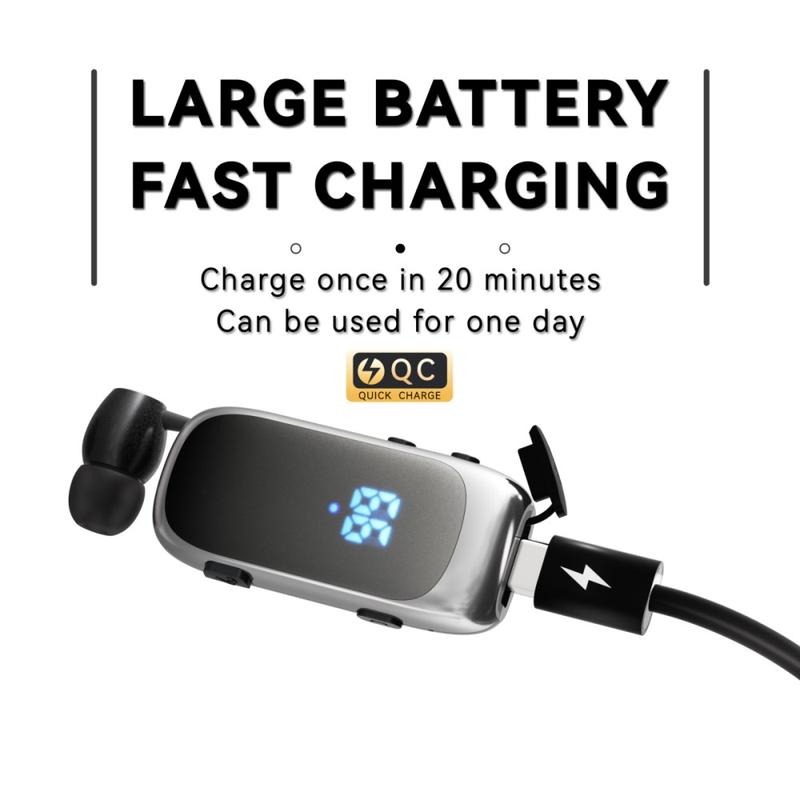 K88Pro Clip-On Wireless Bluetooth Earphone with LED Digital Battery Display - ENC Call Noise Reduction, Dual Device Pairing, USB-C Fast Charging