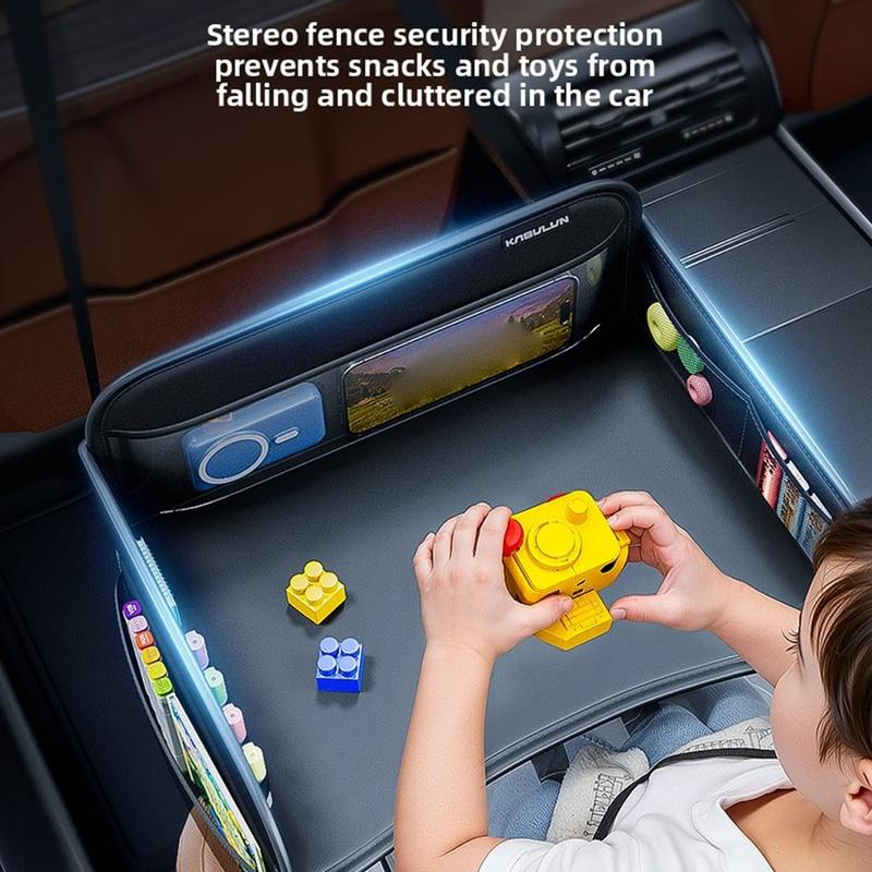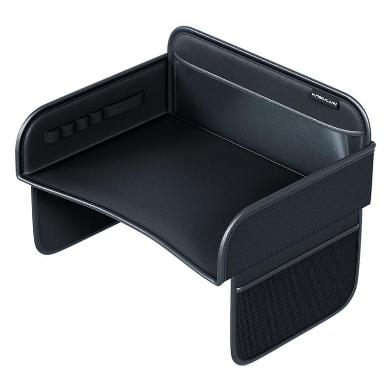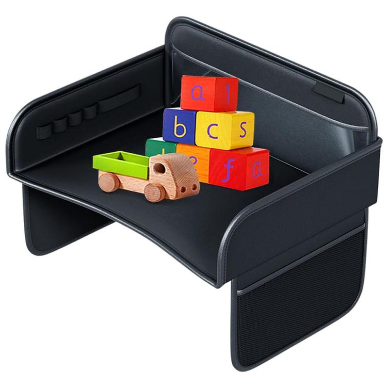 - Multifunctional design combining a kids travel tray and car seat back organizer