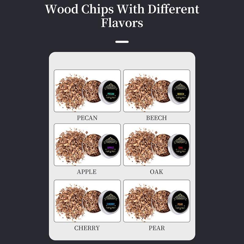 Included are 6 natural wood chip flavours, allowing you to customise your drink profile from subtle to bold. Experiment with different aromas for whiskey tastings, signature cocktails or special occasions.