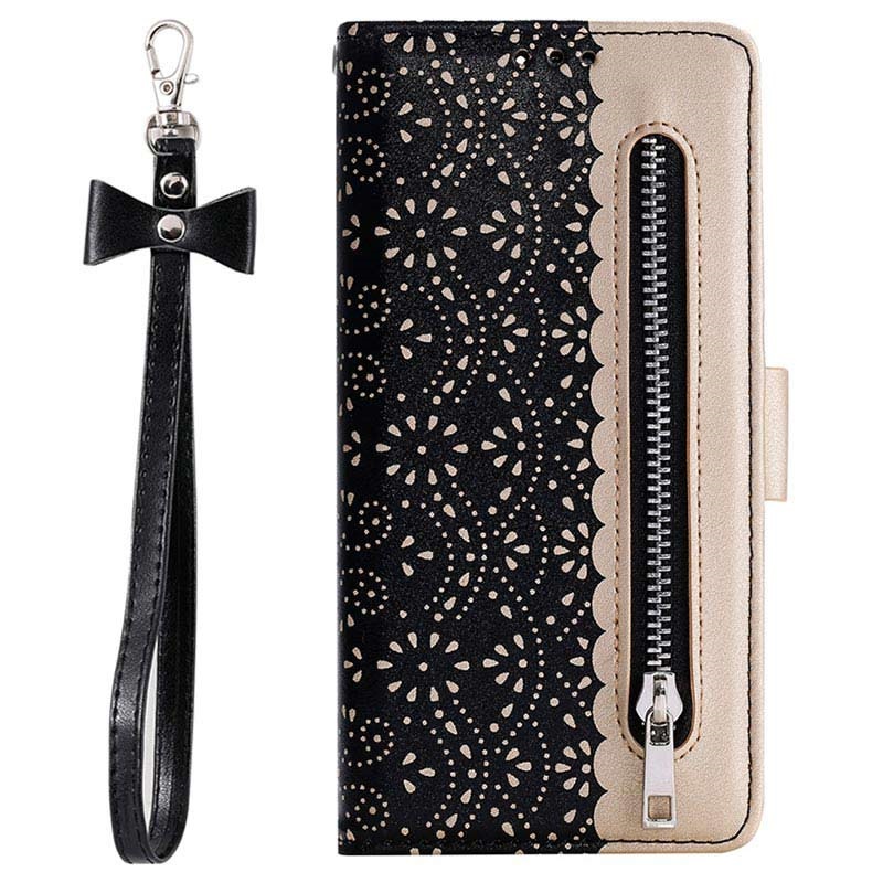 This incredibly stylish wallet case with lace pattern protects your iPhone 11 Pro from damage, and front zipper pocket lets you store paper money and coins.