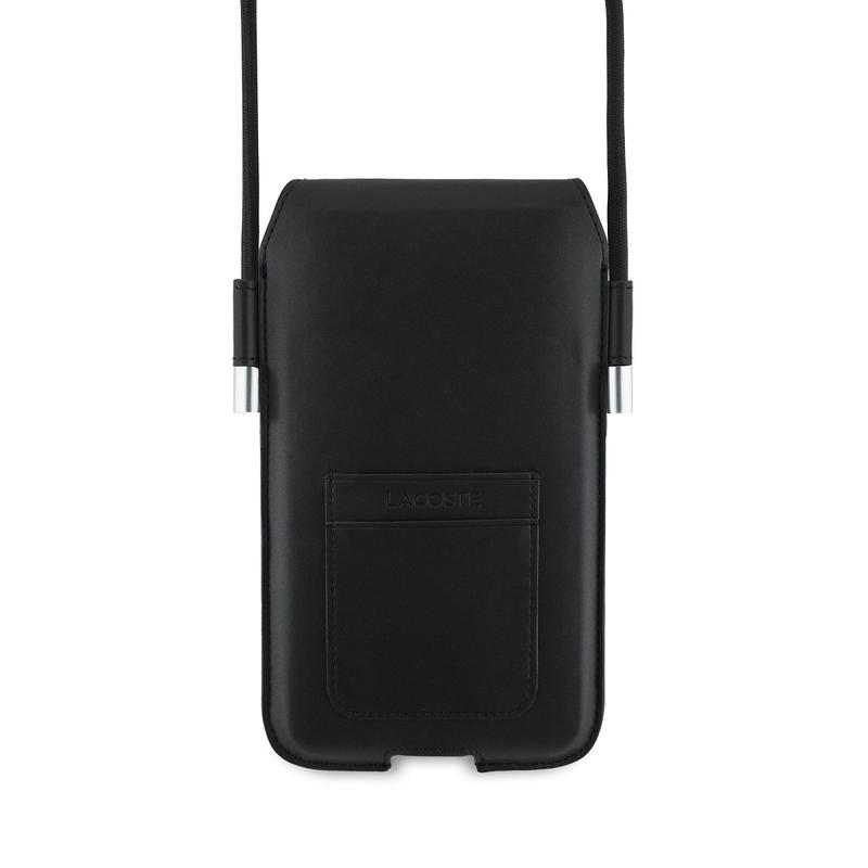 Crafted from soft, textured PVC with the signature Lacoste monogram, the pouch is finished with the iconic embroidered crocodile logo on the front. Discreet yet functional details—such as card slots and a charging cut-out—make it a stylish solution for modern daily use.