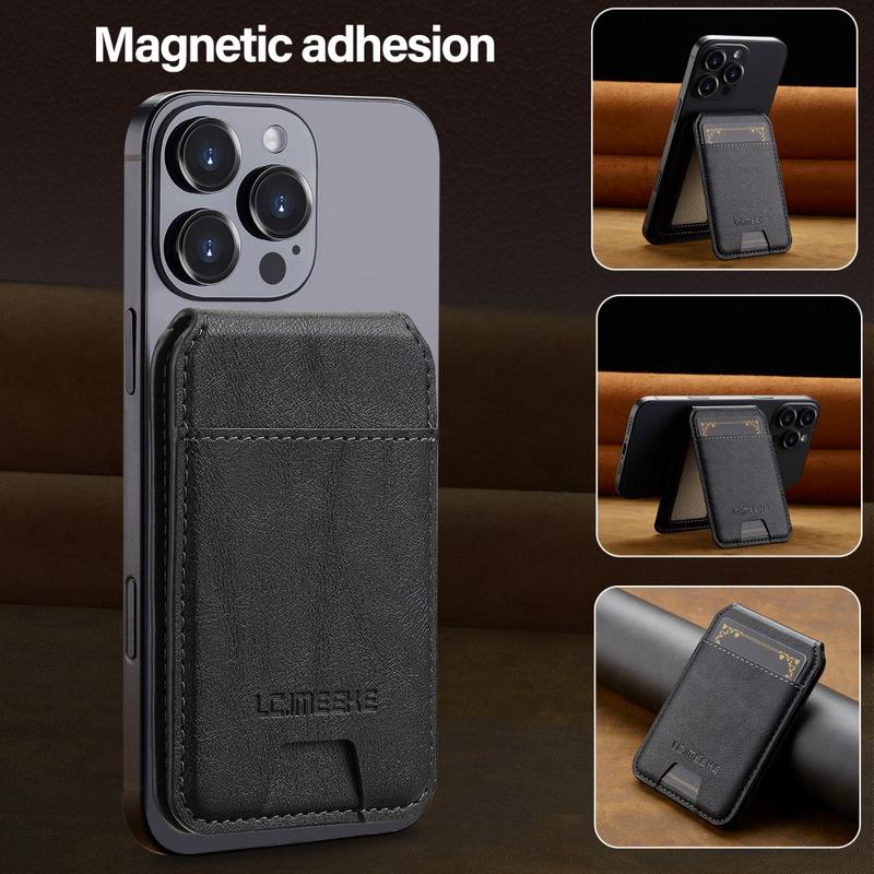 The LC.IMEEKE magnetic card holder is a slim and stylish phone accessory that combines secure card storage with everyday convenience. Designed to attach magnetically to compatible phones, it keeps your essential cards close while maintaining a lightweight profile. With an adjustable kickstand for hands-free viewing and built-in RFID protection, this wallet is ideal for daily use—whether you’re commuting, travelling, or relaxing at home.