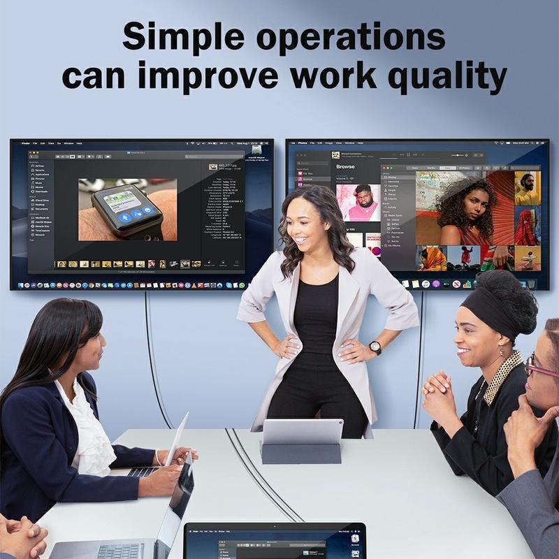 This adapter features two HDMI outputs, supporting extended and mirrored display modes. One port supports 4K resolution at 30 Hz (via TUTULINK driver), while the second delivers 1080P Full HD, allowing flexible display combinations for work, presentations or entertainment.