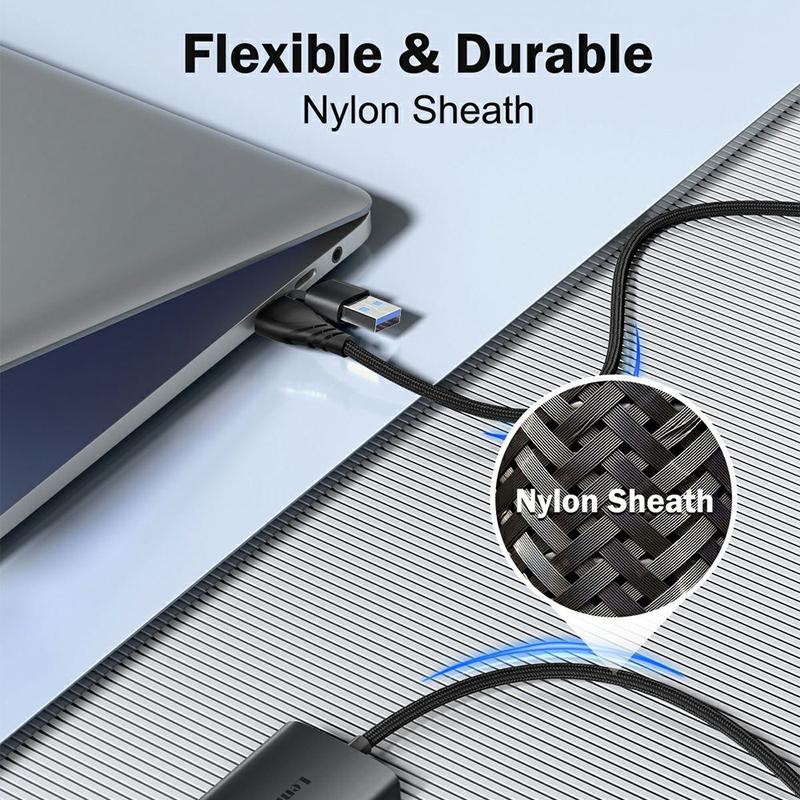 The adapter features a nylon braided cable that resists tangling and pulling, improving durability over time. Its compact adapter body and 60 cm cable length make it easy to carry in a laptop bag or backpack.