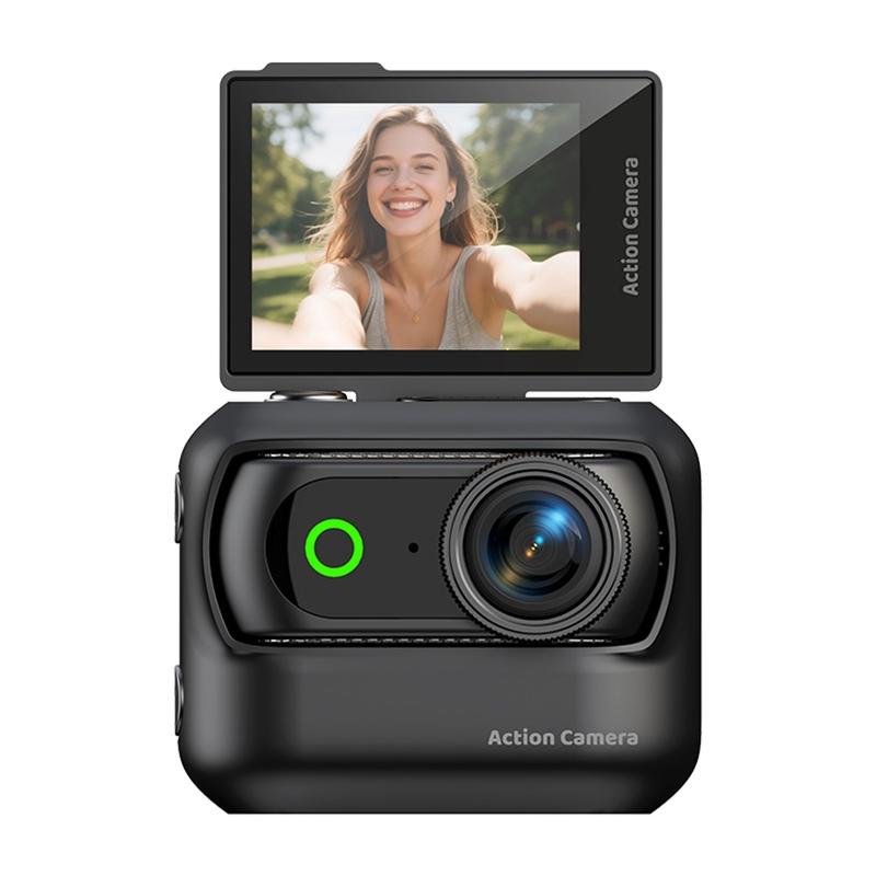 - Compact action camera designed for vlogging, sports recording, and hands-free everyday filming