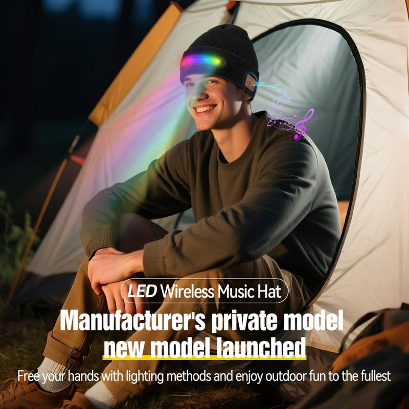 M1-BTD4 LED Beanie Hat with Bluetooth 5.4 & Stereo Speakers – Warm Music Cap with Colorful Lights for Night Running & Outdoor Sports