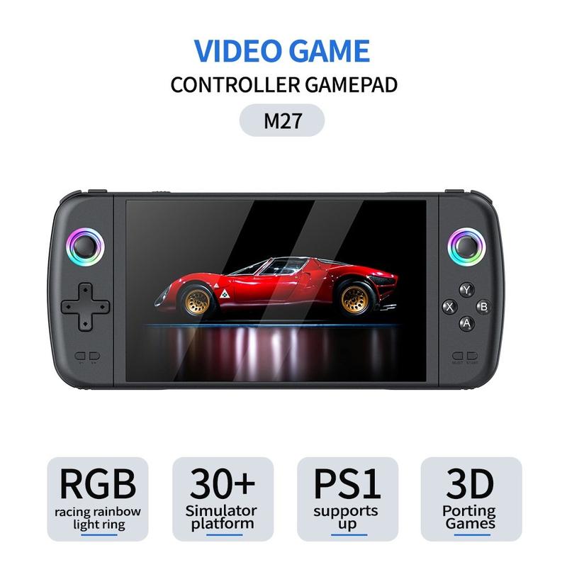 M27 7" Handheld Game Console - IPS Display, 20000+ Classic Games, RGB Lighting, HD Output, 64GB TF Card Included