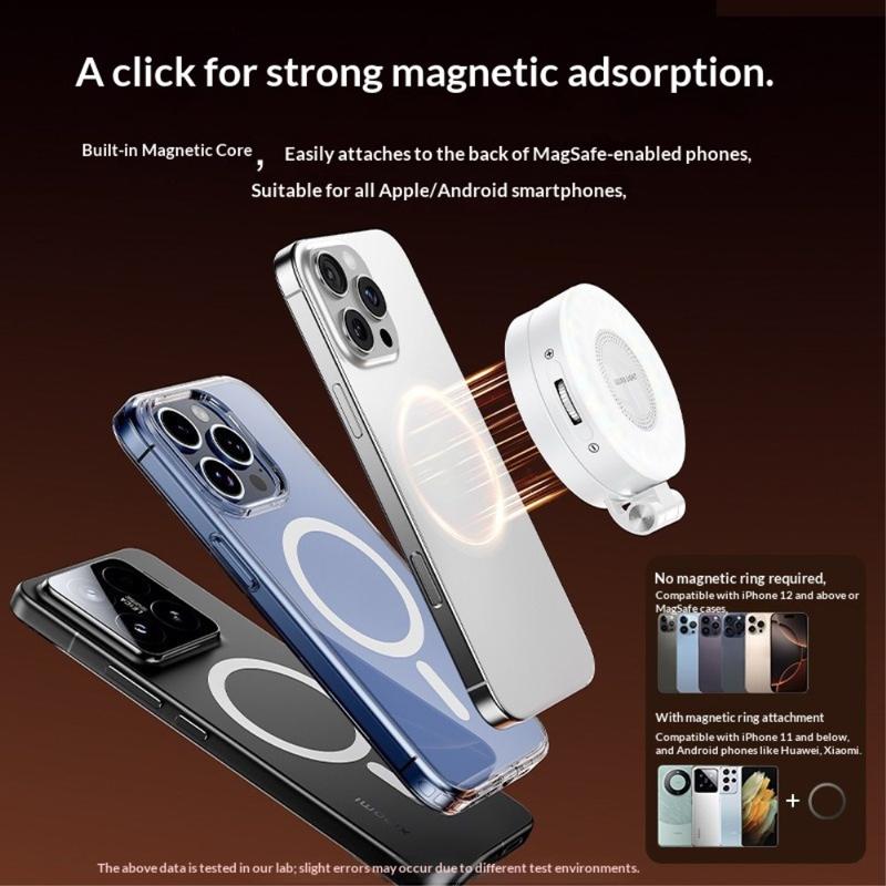 The M28 magnetic pocket LED fill light is a compact, handheld lighting tool designed for creators, photographers and anyone who wants perfect illumination on the go. Its built-in LED system supports three adjustable colour temperatures, allowing you to fine-tune the lighting for warm, neutral or cool tones depending on the scene. The integrated high-definition mirror makes it easy to preview your look or shooting angle in real time, while the magnetic attachment provides effortless mounting on smartphones and other metal surfaces. With a lightweight 108 g design and rechargeable battery, this fill light is ideal for selfies, live streaming, outdoor shooting and travel content creation.