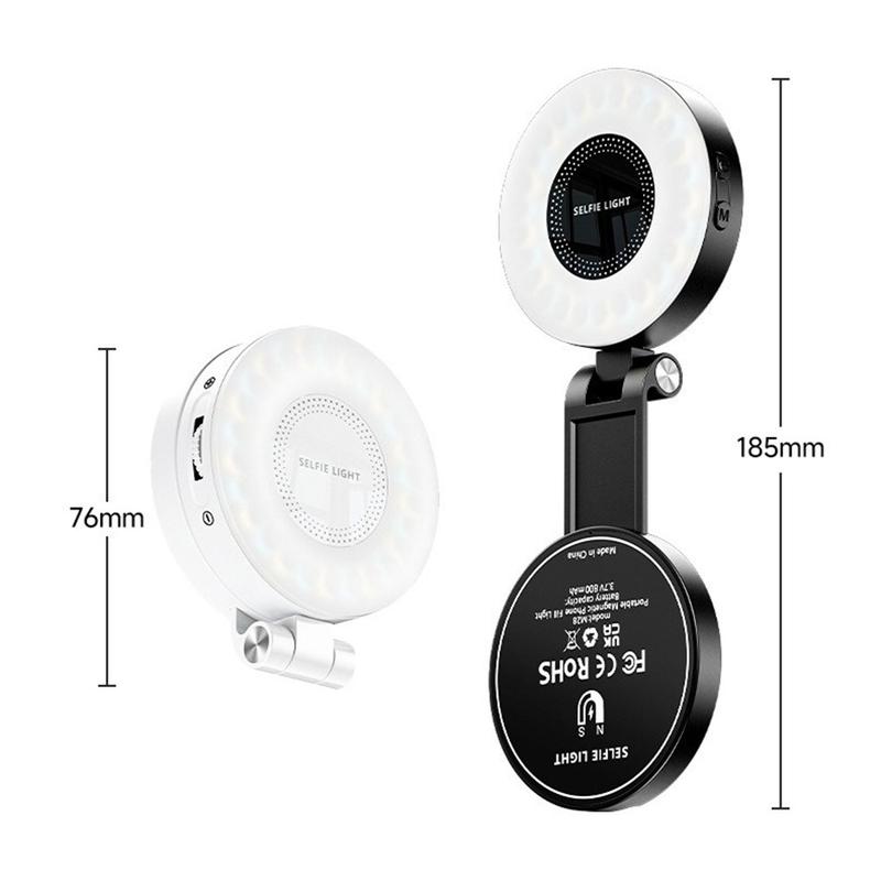 M28 Magnetic Pocket LED Fill Light - 3-Color Temperature Selfie Lamp with Mirror, Handheld & Portable