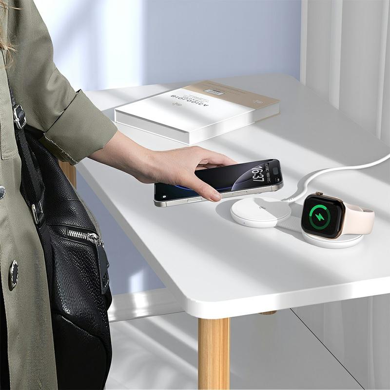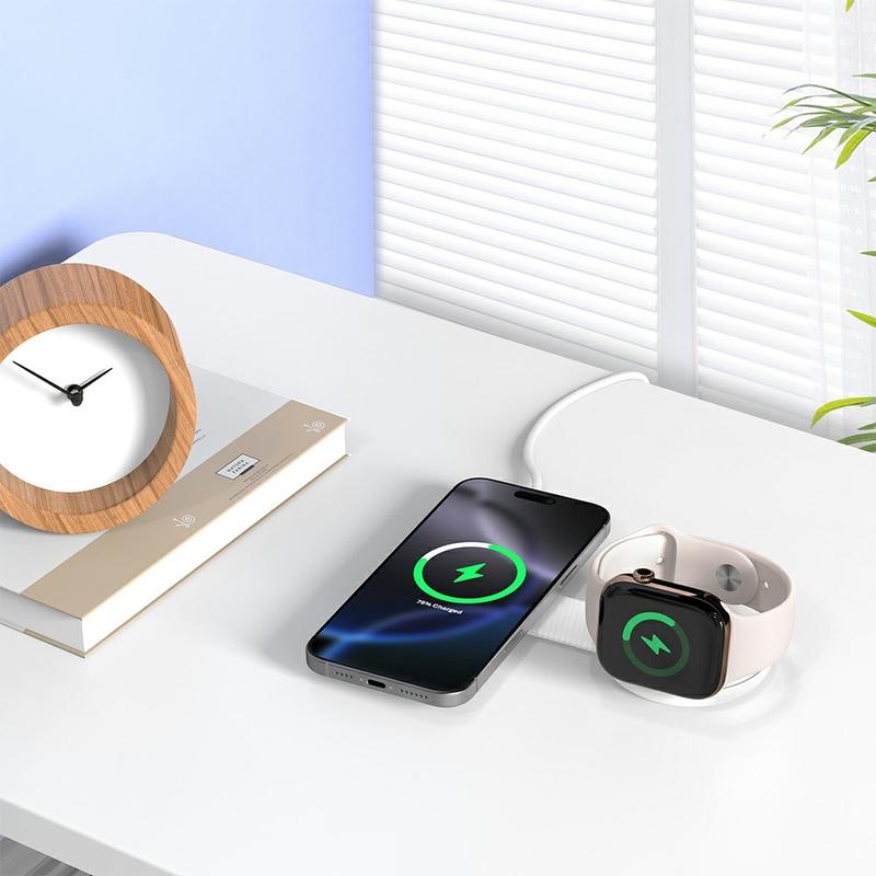 Supports magnetic iPhones, MagSafe cases, Apple Watch, and most Qi-compatible earbuds. A single portable charger that simplifies your multi-device charging needs.
