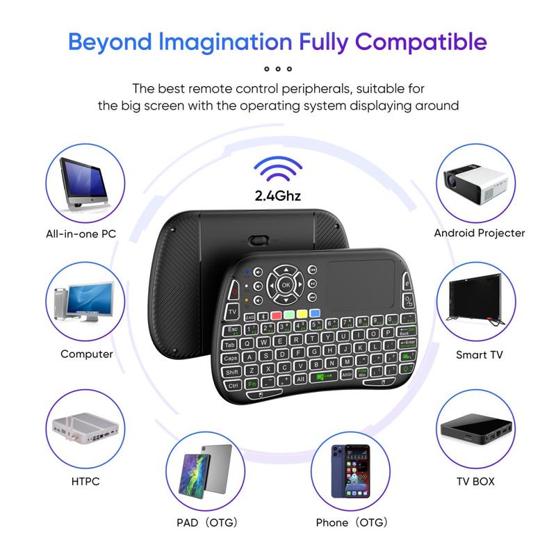 Control your smart devices more comfortably with the M9 mini wireless keyboard and touchpad combo. Designed as a compact handheld remote keyboard, it combines a full QWERTY layout, touchpad navigation, and multimedia controls in one portable device. Whether you re browsing on an Android TV box, navigating a smart projector, or controlling a media PC, the M9 makes typing, scrolling, and navigation much faster than using a standard remote.