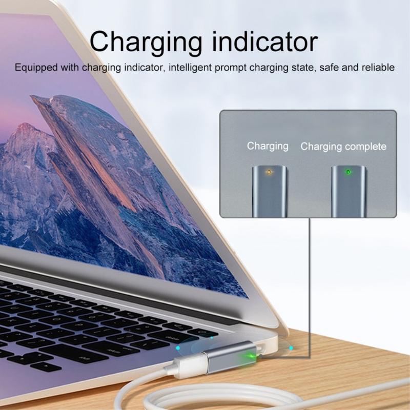 The magnetic interface ensures a secure connection that resists accidental disconnection, helping protect your laptop during charging. An integrated charging indicator clearly shows the charging status, providing peace of mind and easy monitoring at a glance.