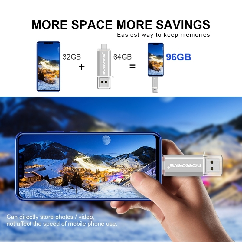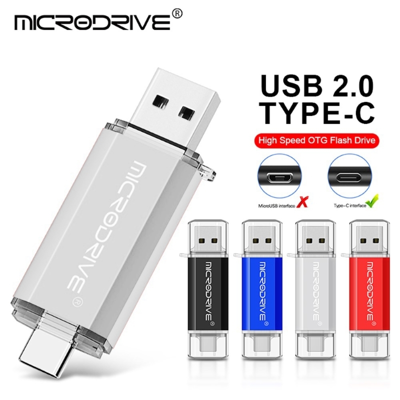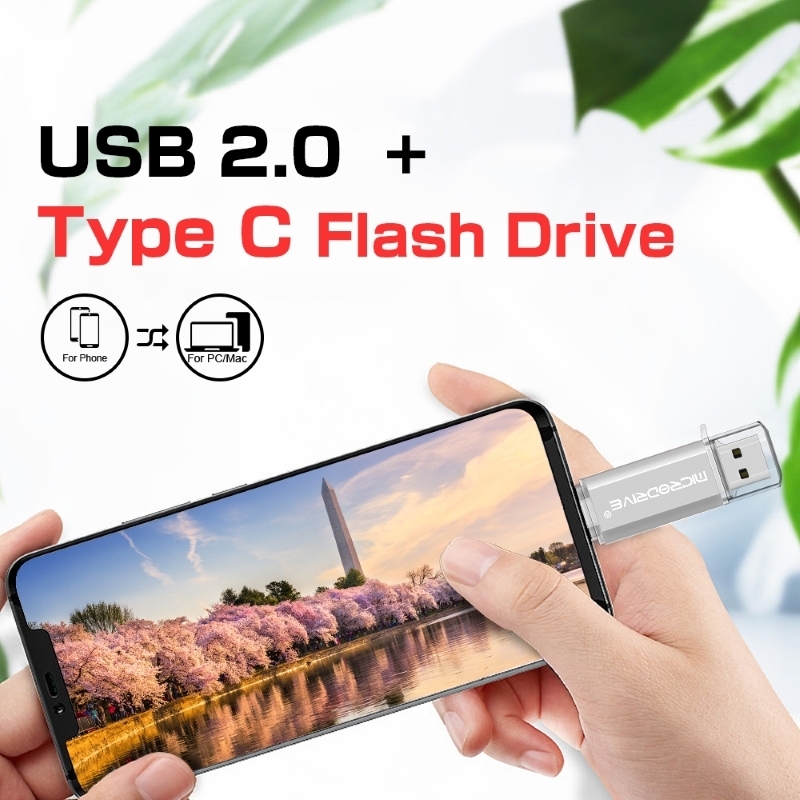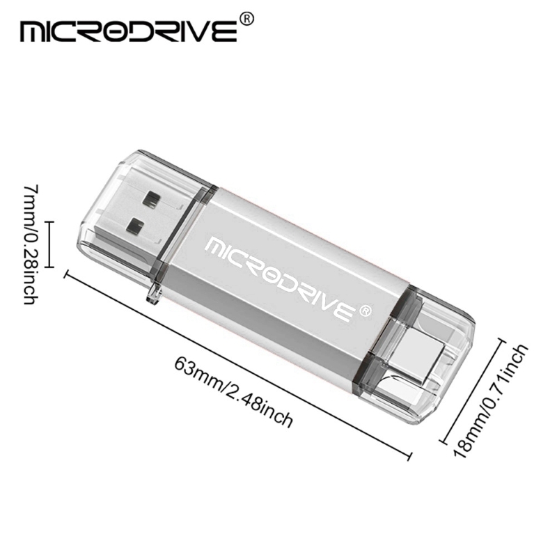 MICRODRIVE 64GB 2-in-1 USB 2.0 / USB-C Flash Drive - Versatile Data Storage for Phones, Laptops & More