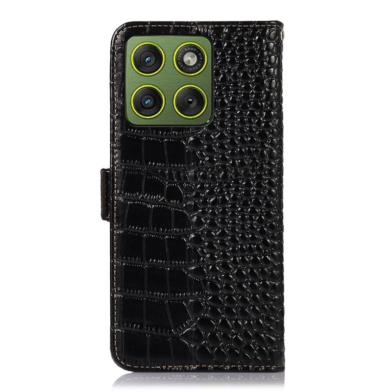 A lightweight and soft wallet case with a unique crocodile texture, the perfect choice to protect your Motorola Edge 70 and keep it undamaged. It's made of high-quality genuine leather and inner TPU material, designed with three card slots, an ID slot, and a pocket for cash, ideal for carrying your essentials next to your Motorola Edge 70. Also, RFID technology effectively blocks signals and keep's your data secured.