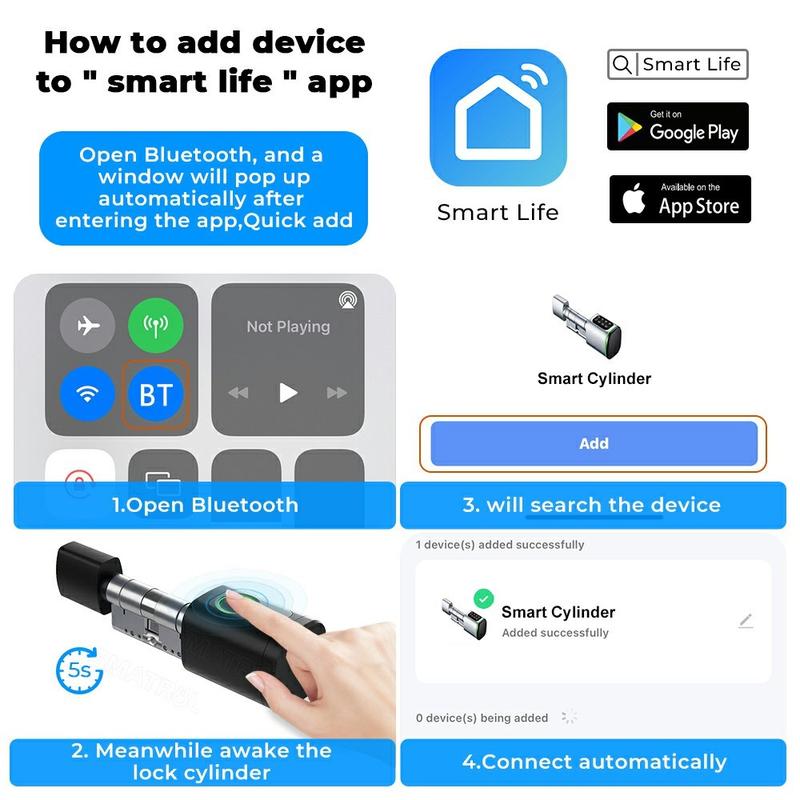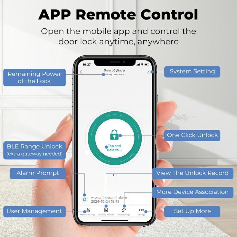 This smart lock cylinder supports 5 different unlocking methods, making it easier to choose the option that suits your routine. You can unlock the door through the app, fingerprint recognition, password entry, IC card, or traditional key. This flexibility is especially useful for households with multiple users, guest access, office environments, or anyone who wants a more convenient alternative to carrying keys all the time.