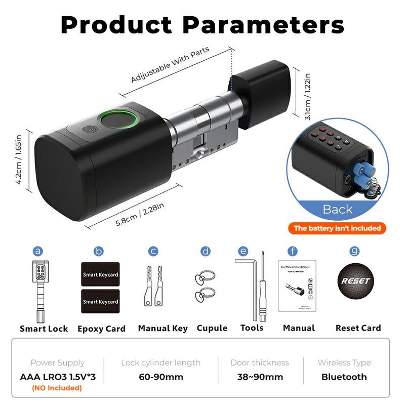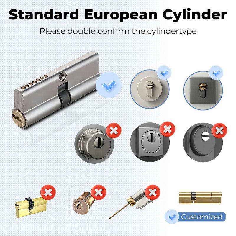 This smart lock cylinder is designed for easy replacement of an existing lock core without changing the door structure. Its adjustable 60-90 mm cylinder improves compatibility with different door thicknesses and common European lock sizes. Installation is straightforward and can be completed quickly, making it a practical upgrade for users who want a smarter locking system without a more complex door modification.