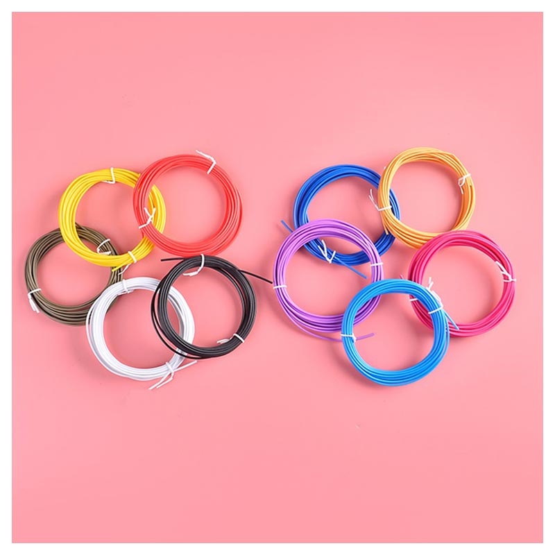 Refill the 3D printing pen for kids with these multicolor PCL filaments! Universal compatibility - 1.75mm printing filament diameter makes them suitable for most 3D pens. Each 3D pen filament refills color has a length of 5 meters. Put the used filaments into warm water, and after a while, you can use them as a plasticine.