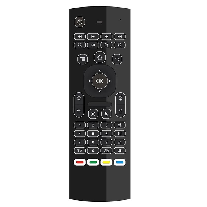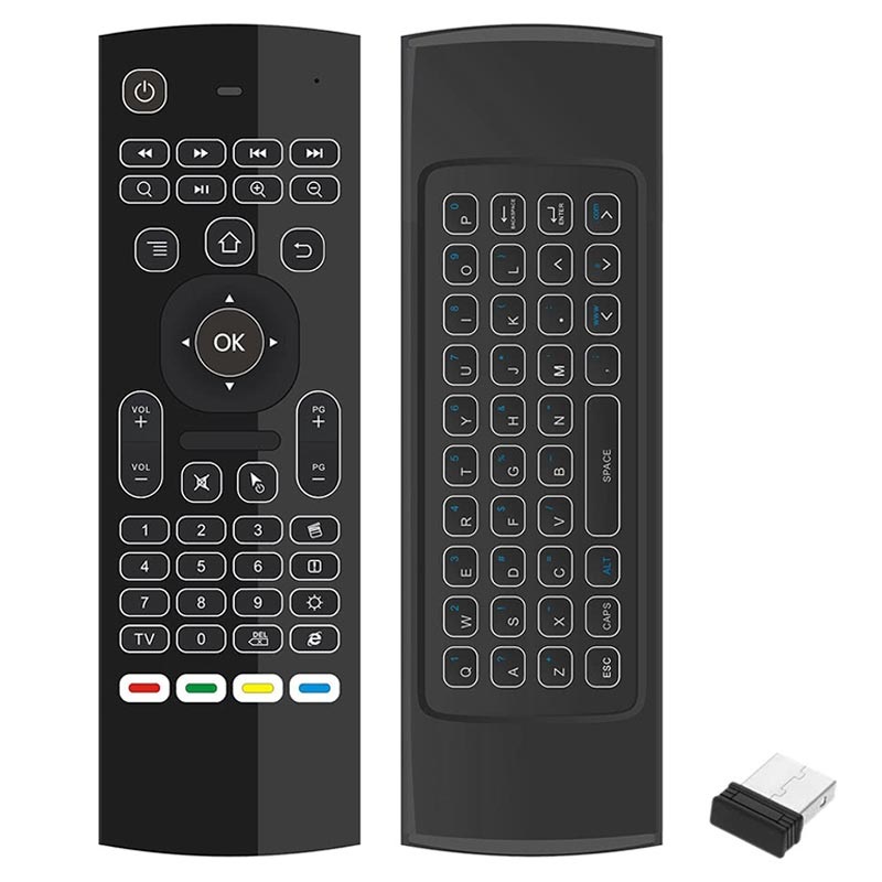 - 5-in-1 design: air mouse, keyboard, remote, game controller, backlight