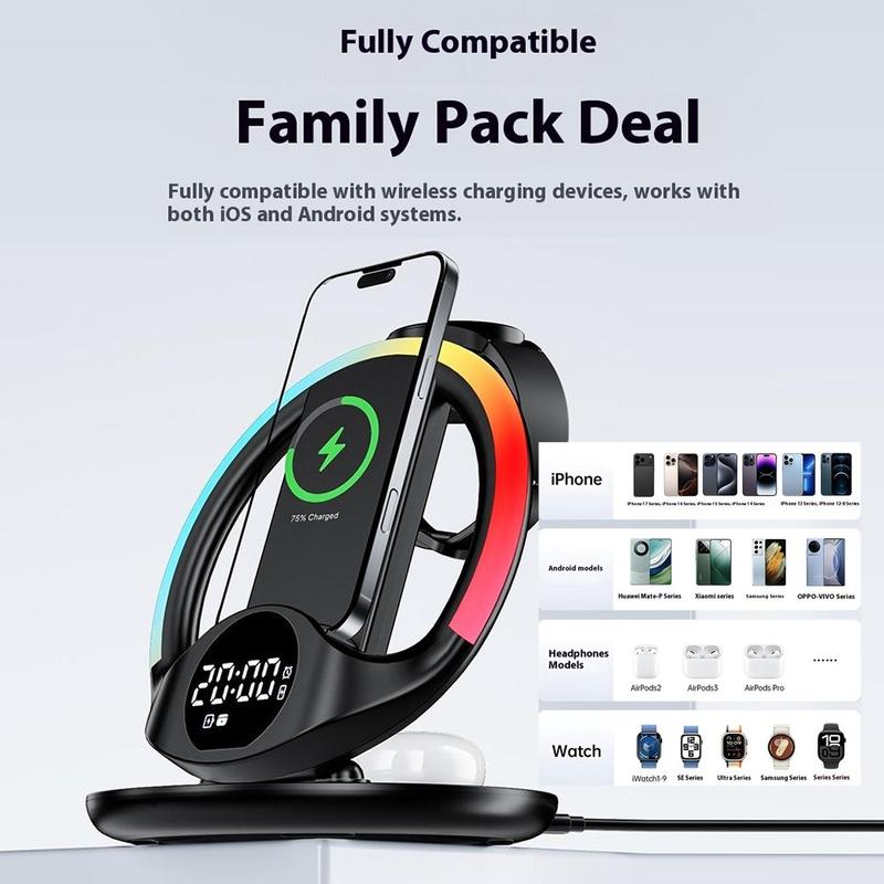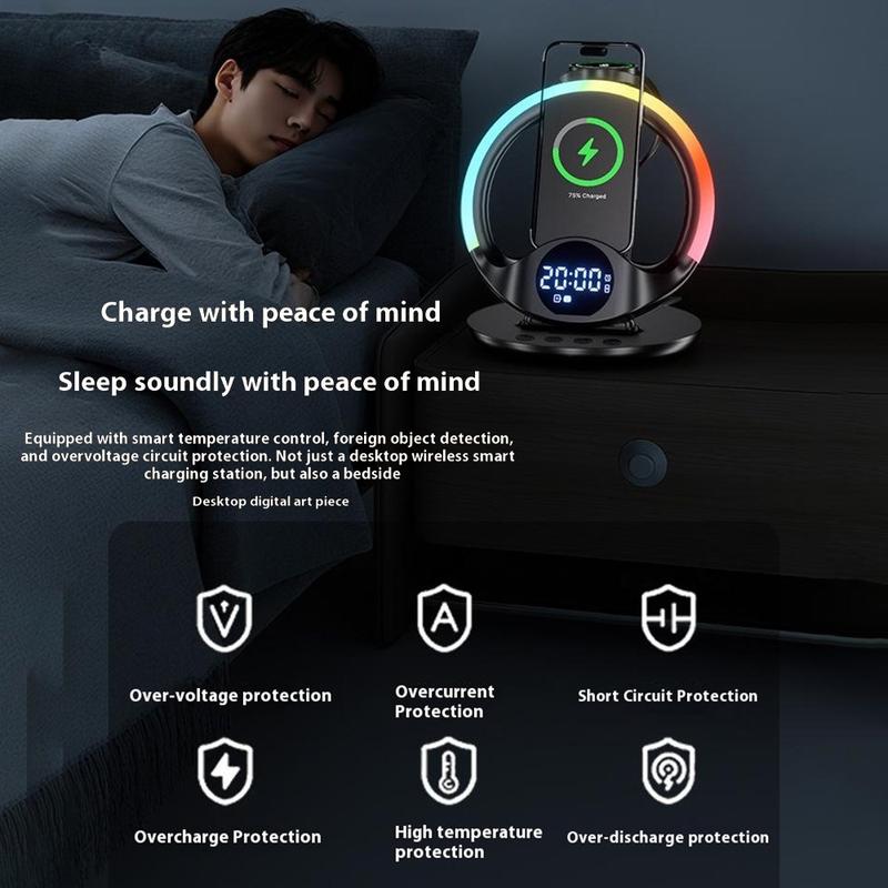 N01 6-in-1 Wireless Charging Station / Magnetic Fast Charging Stand with Alarm Clock, Smart Temperature Control and Night Light